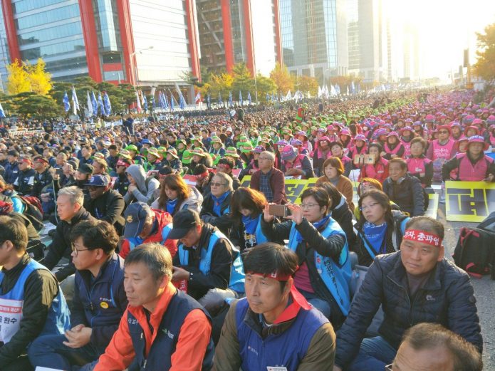 當天的活動據主辦單位估計有超過10萬人上街,高喊訴求「拒絕勞動法修惡」、「保障勞動基本權」、「廢除非典型勞動」等訴求。在隊伍的最前方,是被派遣外包的國道收費員以及學校校內的工作者(例如廚工、技工,甚至是非典型雇用的臨時教師等),要求公司全面正式僱用,不要再用非典型勞動的畸形契約來損害勞工的權益。