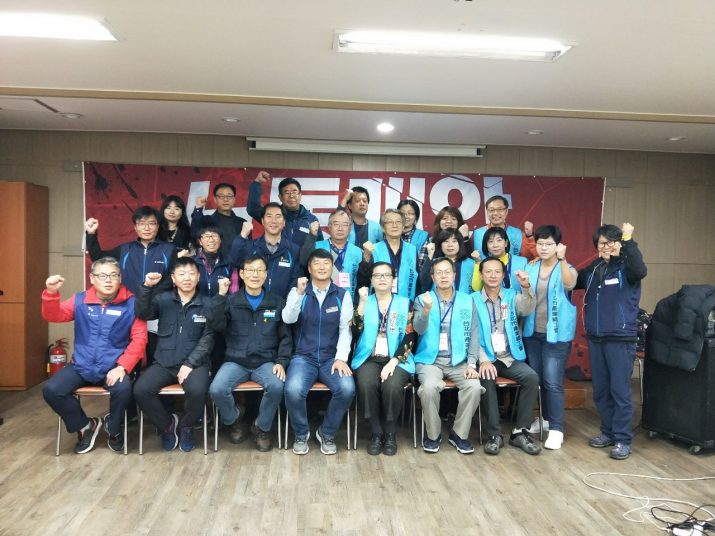 我們訪問京畿道本部(11月8日)的前一天,正好遇到首爾大醫院的員工無限期罷工,就是醫院的非典型勞動者罷工抗議、要求轉正職。當天下午則是去拜訪金屬工會京畿地區支會的日立華城分會,面對資方持續漠視工會的存在表達最沈痛的抗議,透過罷工行動來要求資方儘速開啟談判、締結團體協約。