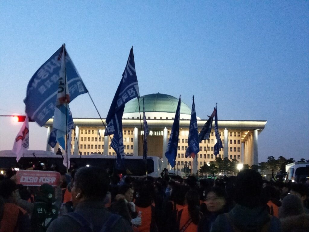 11月9日我們去參加韓國的2019全國勞動者大會「100萬名全泰壹,佔領汝矣島!」,地點在於韓國漢江上的汝矣島,它是韓國證券交易所和韓國金融投資協會的所在地,是譽為「韓國的華爾街」的金融與投資中心,是韓國地價最貴的地方,也是國會議事堂(類似台灣的立法院)所在地。